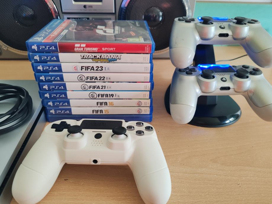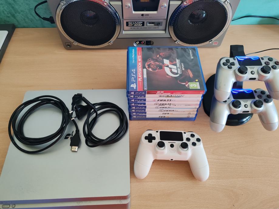 Ps4 slim 512gb,godinu I pol star, stoji malo igran sa 7 igra I punjačem, 3 yoisticka jedan novi sve radi savršeno, isključivo osobno preuzimanje