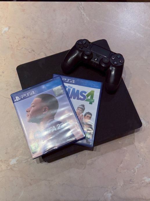 Sony PlayStation 4 konzola sa dvije igrice i joystickom.