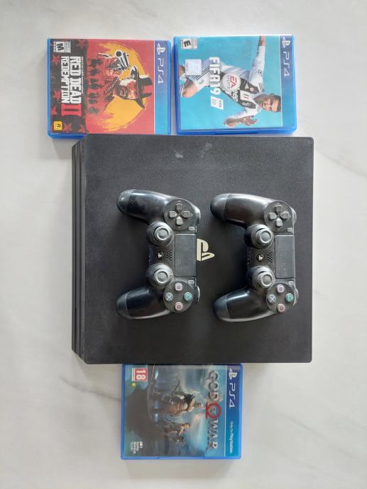Prodajem slabo korišten PlayStation 4 Pro s 1 TB memorije. Uz konzolu dolaze i 2 ispravna originalna joysticka, svi potrebni kablovi (dugačak kabel za joystick, kabel za napajanje i HDMI kabel) te 3 igrice (Red Dead Redemption 2, God of War i FIFA 19).