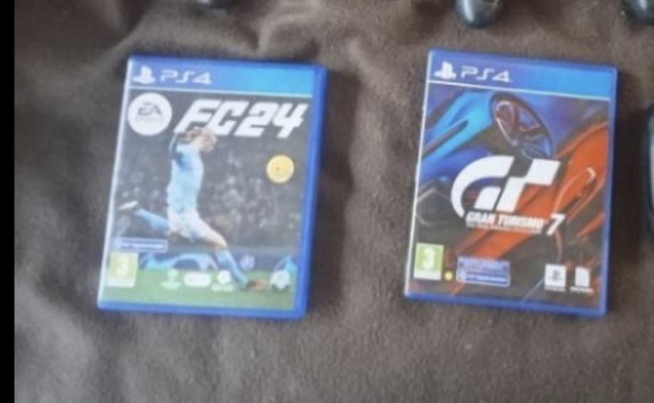 PS 4 KONZOLA, EA FC 24 , GRAN TURISMO 7 I JEDAN KONTORLER SA STICK DRIFTOM CIJENA NIJE FIKSNA.