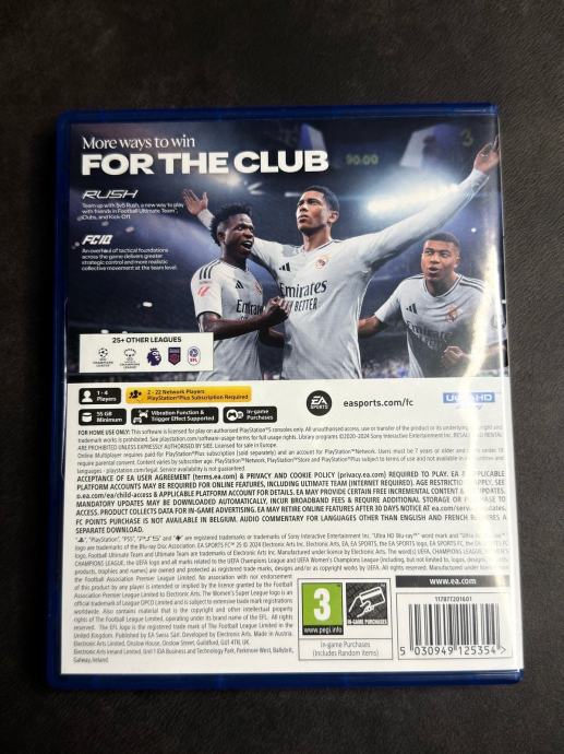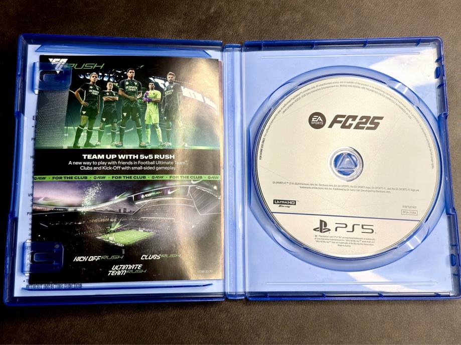 Prodajem EA Sports FC 25 za PlayStation 5. Igra dolazi u originalnoj kutiji zajedno s diskom i umetkom. Disk je ispravan i funkcionalan.