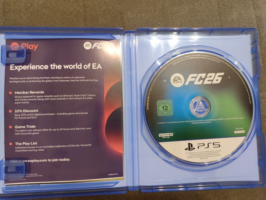 EA Sports, FC26 PS5, kutija i CD sa računom. Krivo kupljeno. Ne korišteno.