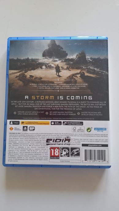 Prodajem Ghost of Tsushima Director's Cut za PS5 na DVD-u. Ovo je prošireno izdanje popularne akcijske avanture smještene u feudalni Japan, koje uz osnovnu igru uključuje i Iki Island ekspanziju te Legends online multiplayermod.