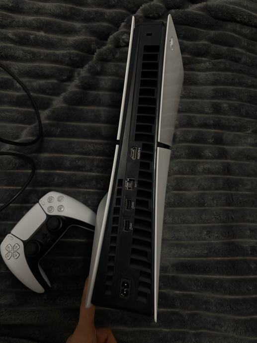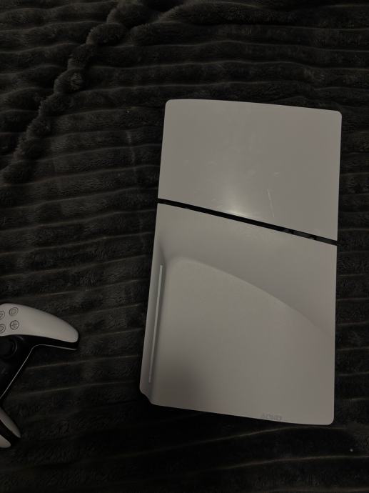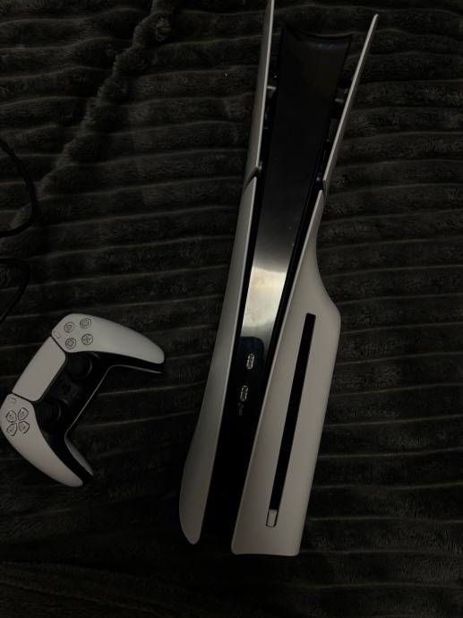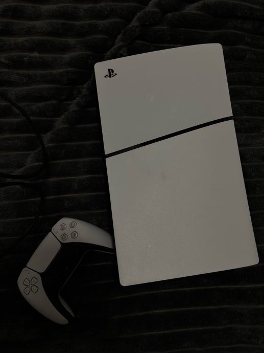 Prodajem PlayStation 5 Slim konzolu u bijelo-crnoj boji. Radi se o novijoj, kompaktnijoj verziji PS5 konzole s ugrađenim diskom. Uz konzolu dolazi jedan DualSense kontroler u bijeloj boji.