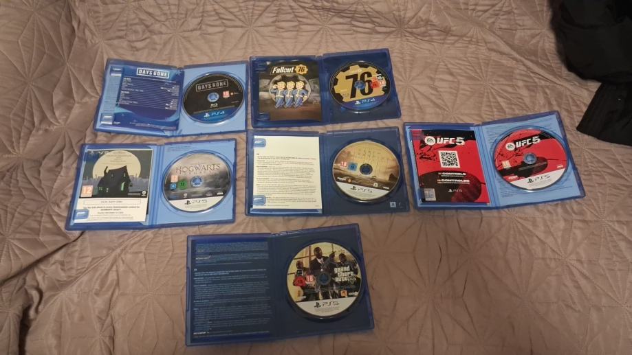 Prodajem PlayStation igre za PS4 i PS5 konzole. U ponudi su Days Gone, Fallout 76, Hogwarts Legacy, Death Stranding, UFC 5 i GTA V Premium Edition. Sve igre su u dobrom stanju i potpuno funkcionalne.
