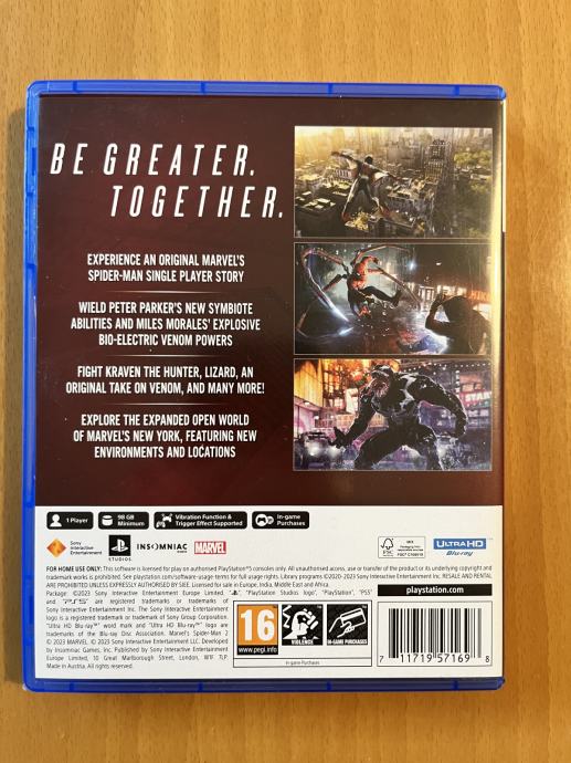 Marvel's Spider-Man 2 sljedeći je nastavak hvaljene Marvel's Spider-Man franšize. Zajednička produkcija Insomniac Gamesa, PlayStationa i Marvel Gamesa koristi punu snagu PS5 konzole dok priča potpuno novu, uzbudljivu priču u legendarnom svijetu Spider-Mana.