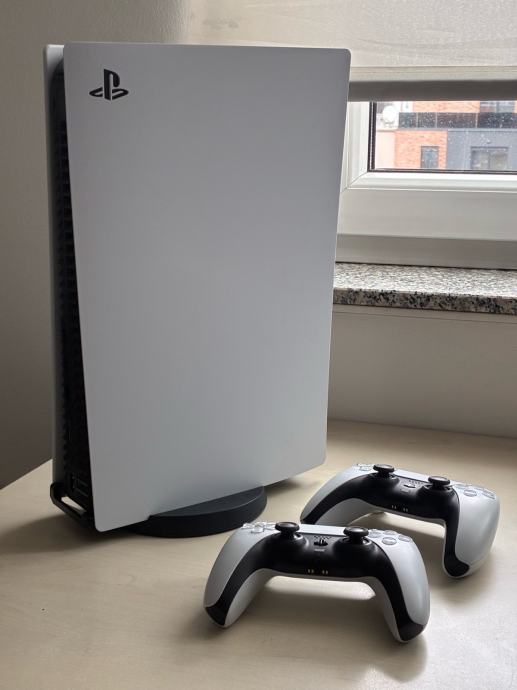 Prodajem Sony PlayStation 5 Slim Digital Edition s dva kontrolera. Konzola je u rabljenom stanju, ali funkcionira besprijekorno. Digital Edition znači da nema optički pogon za diskove, tako da se igre pokreću isključivo putem preuzimanja s PlayStation Store-a.