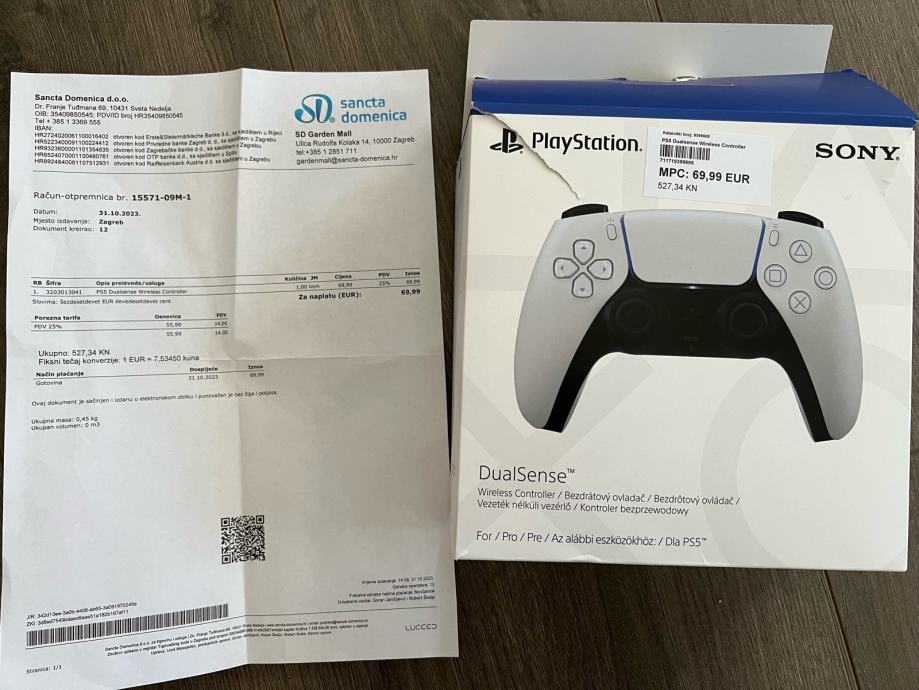 PS5 sa 2 kontrolera potpuno ispravna (jedan koristen samo par puta, kupljen 31.10.23. u SD, sa racunom i garancijom).