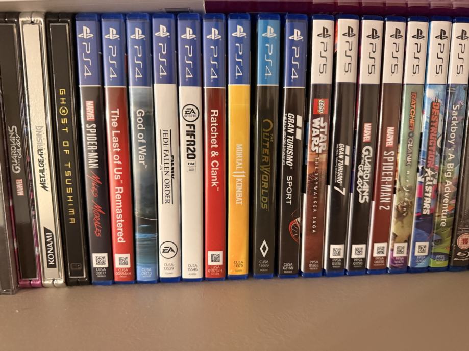 Uz konzolu dolazi 17 originalnih igara (PS4 i PS5), sve fizička izdanja, kompletna pakiranja, bez ogrebotina.