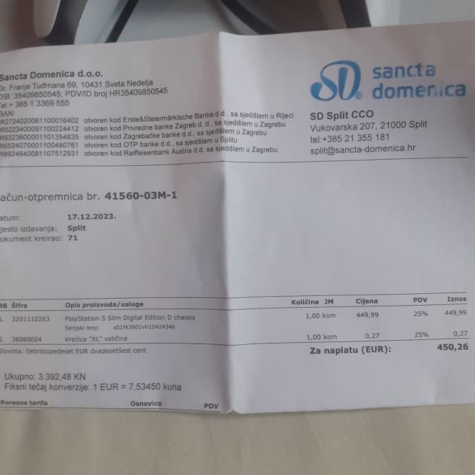Prodajem PlayStation 5 Slim Digital Edition.Placen 450€ u odlicno stanju i potpuno ispravan.Šaljem video kako radi.Moguce slanje poštom.Za vise informacija pošaljite poruku.