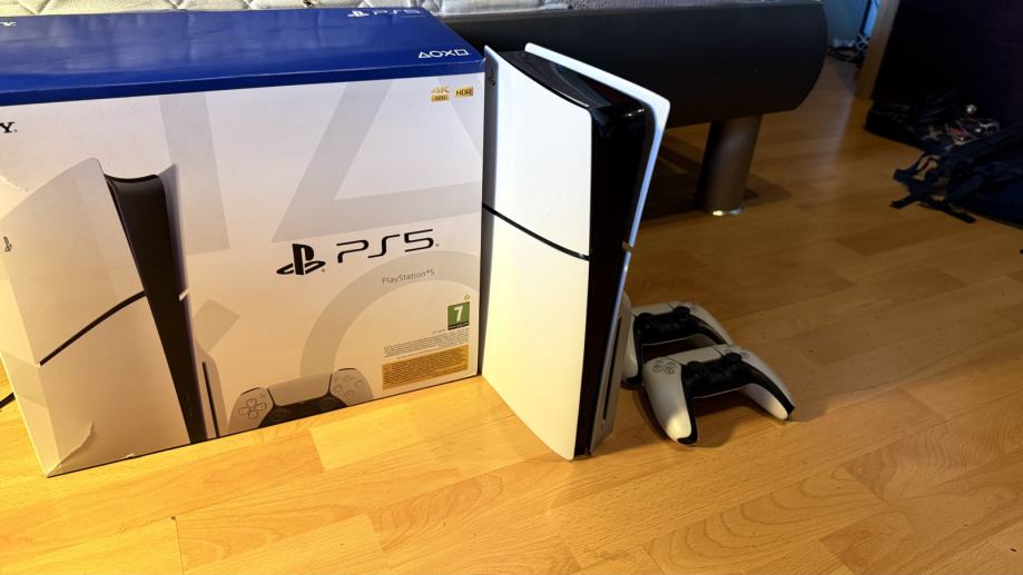 Prodajem playstation 5 slim d jedva koristena, 2 joysticka fifa 25 na cd, digitalno wrc,r6,gta5