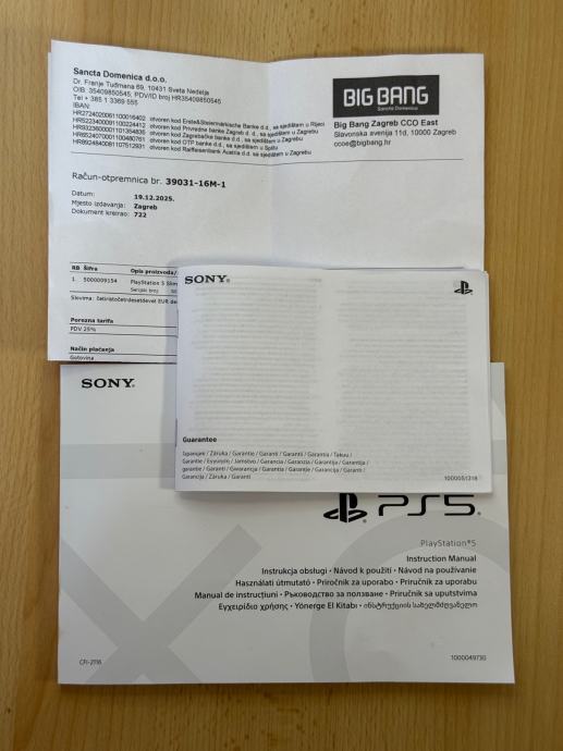 Prodaje se PlayStation 5 Slim Disc Edition s 1TB memorije u zaista vrhunskom stanju. Konzola je stara samo 3 i pol mjeseca, kupljena 15.12.2025. u BigBangu, što znači da je još pod službenim jamstvom do 19.12.2027. (još 20 mjeseci).