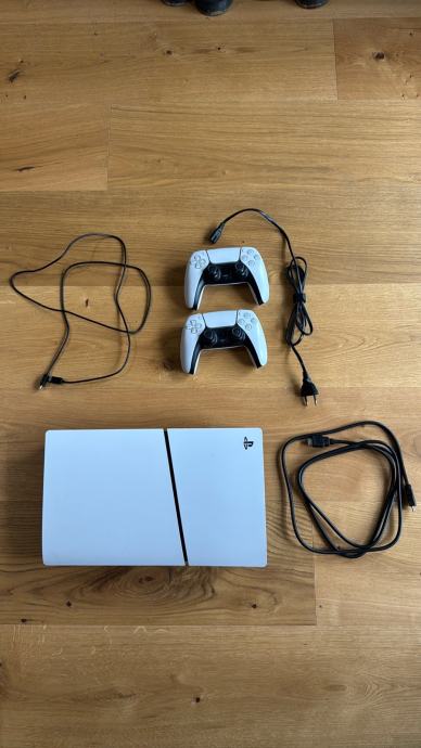 Prodajem PS5 Slim (disk edition, 1TB, super stanje – sve radi besprekorno, par godina korišteno). U kompletu: PS5 konzola + 2 bijela DualSense joysticka (oba odlično rade, bez ikakvih grešaka ili drift-a, testirani) + HDMI kabel. Bez kutije, ali besprekorno i spremno za igru! Cijena: 380 € (ozbiljni pregovori za brzu prodaju, vrijedi 450€+ pojedinačno). Osobno preuzimanje Zagreb