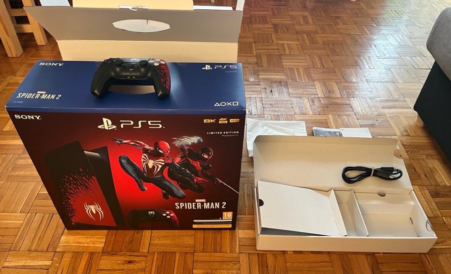 Prodajem PlayStation 5 Marvel’s Spider-Man 2 Limited Edition konzolu sa disk čitačem i Limited Edition kontroler.