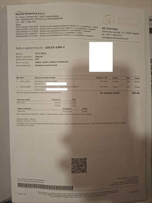 Prodajem PlayStation 5 slim D chassis 1TB, digitalna i disk verzija, konzola kupljena nova u (bivsoj) Sancta Domenici 03/2024, sve čisto, ispravno, uredno i izuzetno očuvano, uz konzolu ide originalni PS5 kontroler, svi originalni kablovi, originalna kutija sa uputama, tipkovnica White Shark model Ronin sa kutijom, 2 originalne PS5 igrice: SpiderMan Miles Morales i NBA2K24 (obje doslovno upaljene 3x puta) te vrlo bitna i vrijedna stvar - plaćeno produljeno jamstvo od dodatne 3 godine, dakle ukupno 5 godina jamstva (istječe 03/2029), moguća besplatna dostava po dogovoru za Zagreb i okolicu, cijena za komplet 480€.