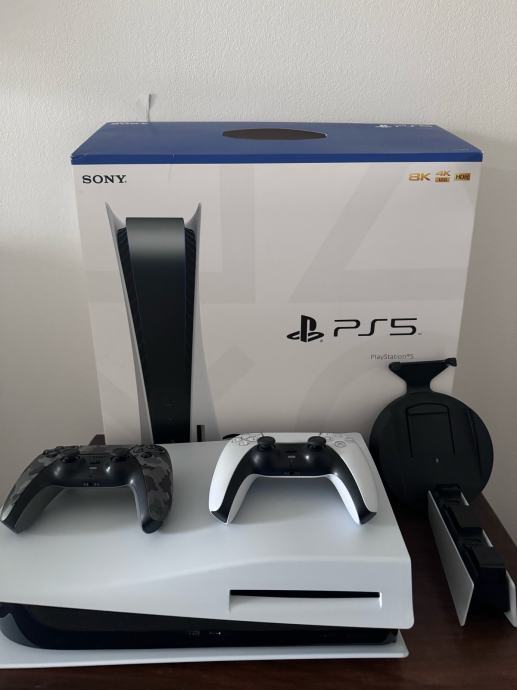 Prodajem PlayStation 5 disk verziju koja dolazi u kompletu s dva DualSense kontrolera, stanicom za punjenje kontrolera i stalkom za konzolu. Sve zajedno čini potpuni set za igranje, bez potrebe za dodatnom kupnjom opreme.