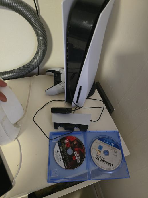 Ps5 sa 3 igrice na cd i oko 4 5 komada kupljene igran par puta i od tad stoji nema papire od selidbe prosle godine radi vrti tih je malo je skroz odigrqn jer mali nece vise igrat dobio pc moze zamjena za neku graficku onda je cijena 330e