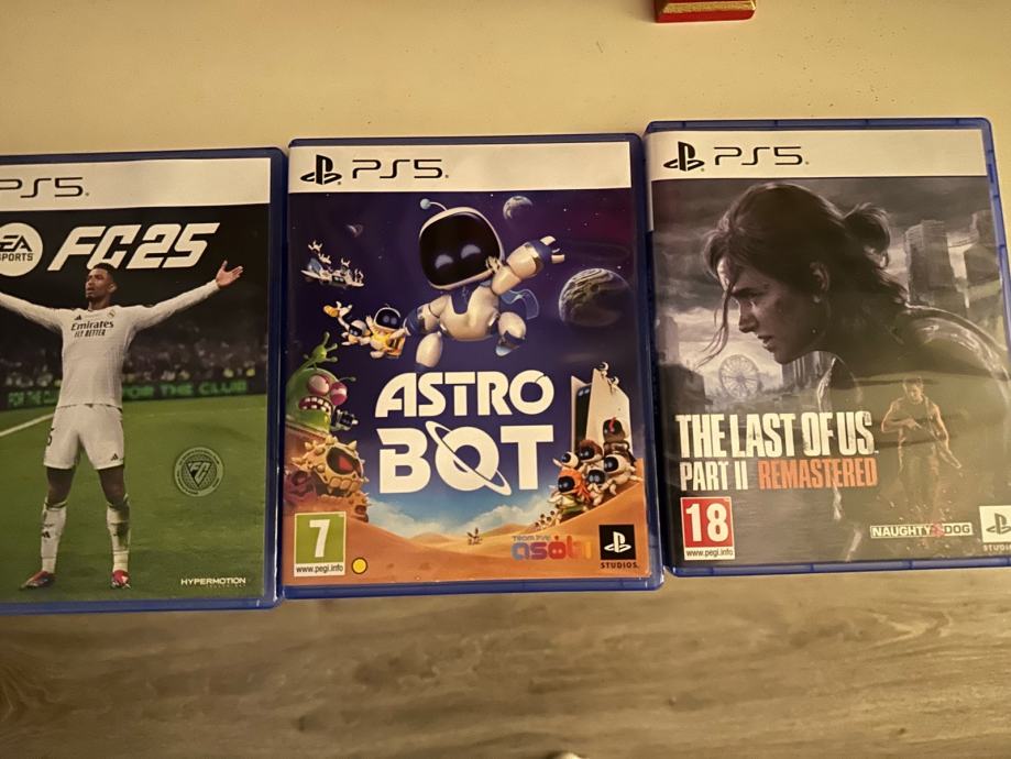 Kutija,racun,garancija vazeca, 2 kontrolera, 3 igre (FC25,Astro Boot,LOU part 2 remastered)