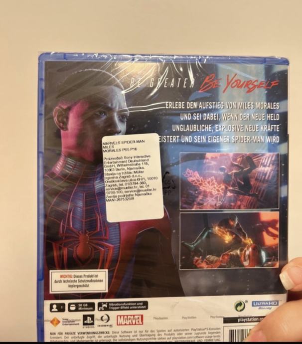 Prodajem potpuno novu, neotpakiranu PlayStation 5 igru Spiderman Miles Morales koja još uvijek ima originalne etikete. Igrica je u savršenom stanju, zapakirana u originalnoj ambalaži za PS5 konzolu. Uživajte u uzbudljivoj Marvel avanturi s Miles Moralesom u ulozi novog Spider-Mana.
