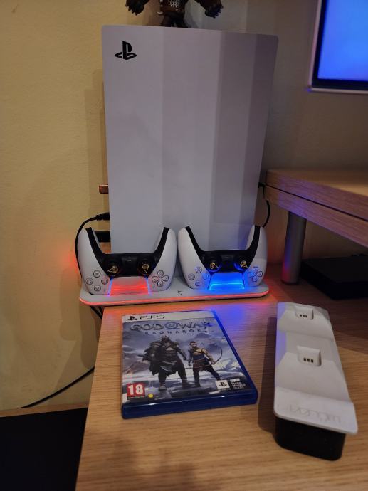 1 kontroler, stalak whiteshark kimura koji u sebi sadrži stalak za slušalice, rgb, 2 punjača za kontrolere i fanove.