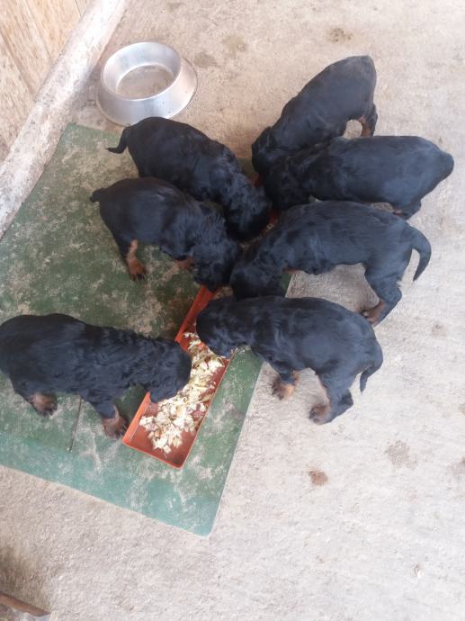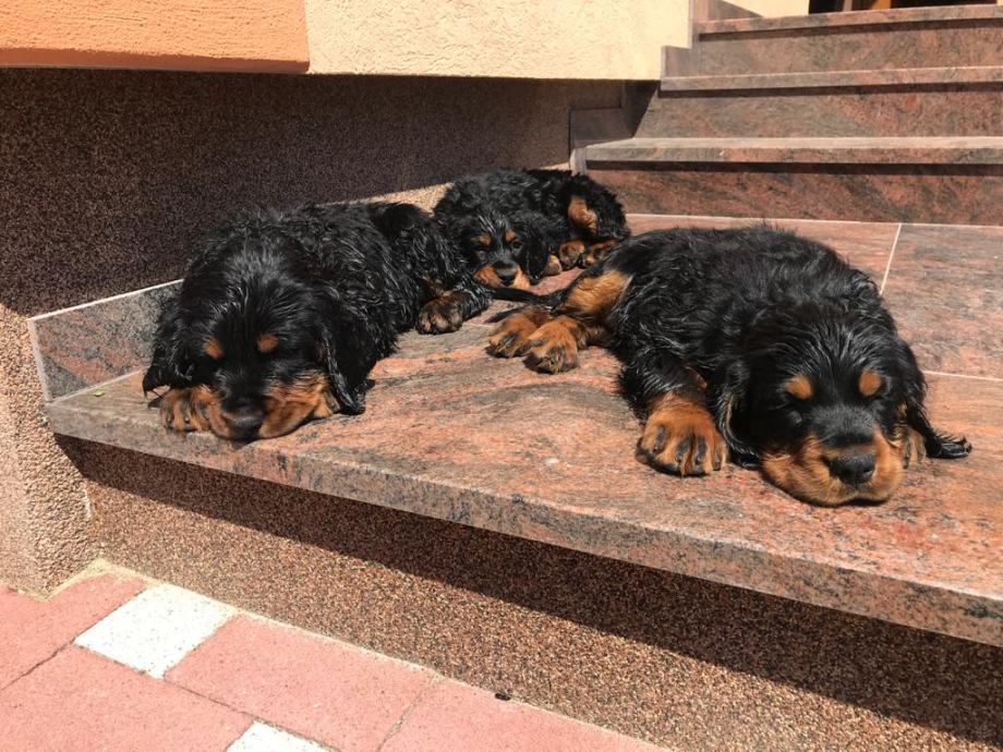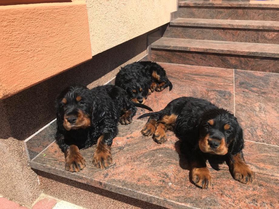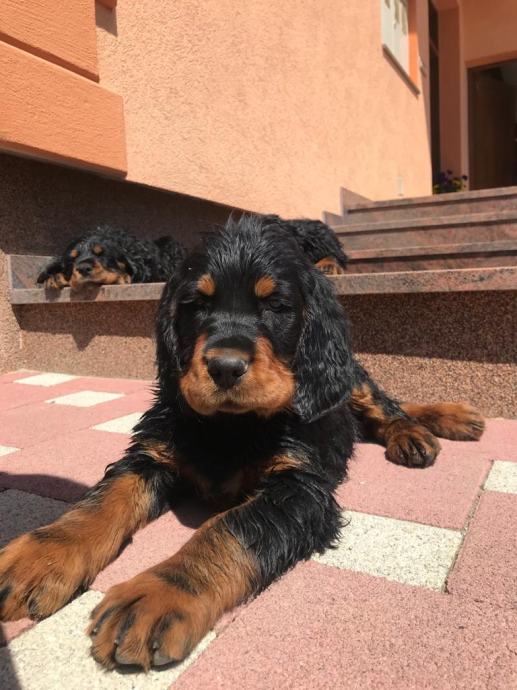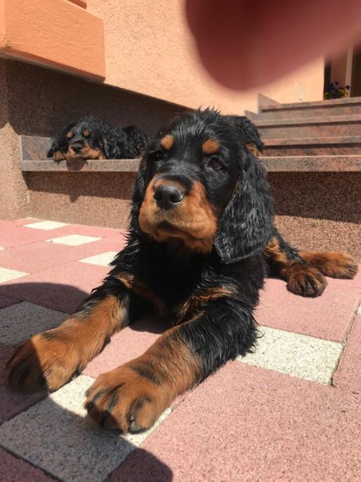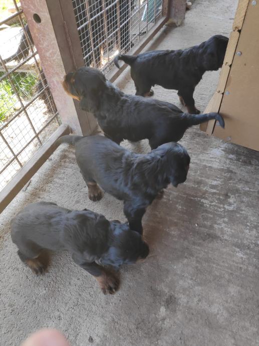 "Gordon seter štenci, oštenjeni 05.03. odlično leglo za izložbe, kućne ljubimce, a po potrebi i za lov. Otac štenaca je Woodland Hoppers DARDEVIL hrvatska linija, hrvatskih i njemačkih uzgojnih linija, s položenim radnim ispitom . Izuzetno je srdačne naravi, slaže se sa svim životinjama (mačke, drugi psi, papige, zamorci...), privržen, nježan s djecom, pravi obiteljski pas. Majka štenaca je HELA, po majci talijanskih (Di Velhatri) i hrvatskih (Crni Biser) linija, a po ocu finska linija, odlična i kao kućni ljubimac ali i u lovu, mirno-blage naravi, neumorno umiljata, poslušna iznad svega, s djecom stalno u igri i šetnji, položeni radni ispit, slaže se s drugim psima bez problema. Štenci su spremni za odlazak u nove domove, mikročipirani, očišćeni od parazita i sa svim potrebnim cijepljenjima."