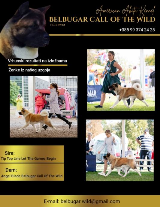 Uzgajivačnica Belbugar Call Of The Wild ponosna je na uzgoj mnogih šampiona odličnih uspjeha po cijelom svijetu.