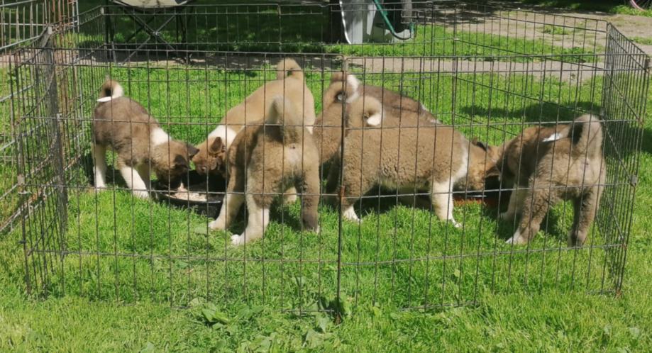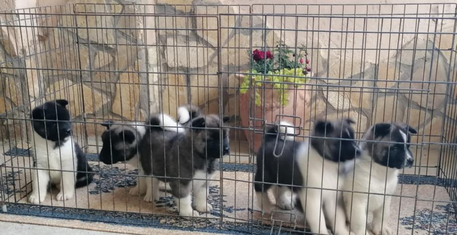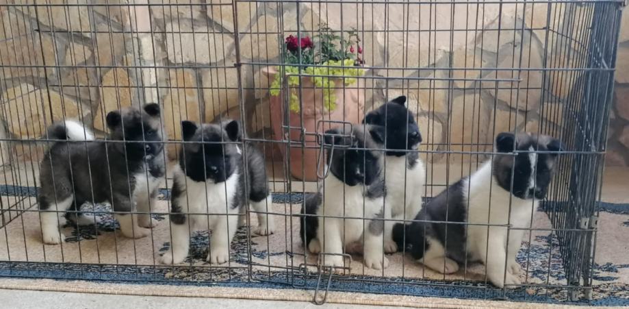 Zbog otkazivanja rezervacija slobodno još nekoliko muških štenaca Američke akite. Prošli 4 mj.starosti vakcinisani tri puta protiv zaraznih bolesti čišćeni više puta protiv parazita.Pri preuzimanju biće cjepljeni protiv bjesnoće i odmah prebačeni na novog vlasnika. Krupne građe lijepog rasporeda boja odličnog temperamenta.