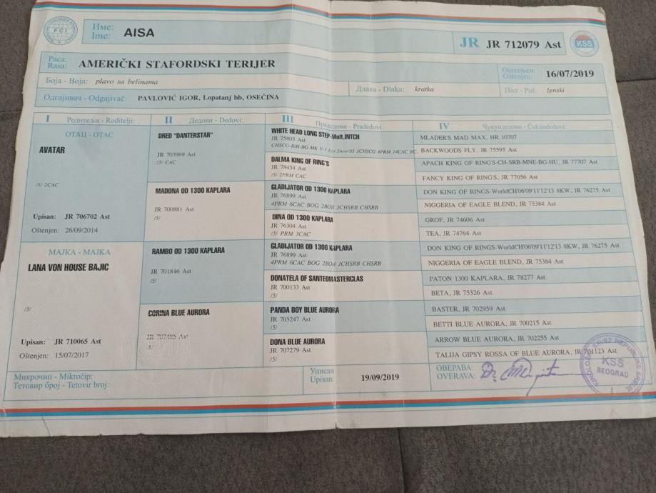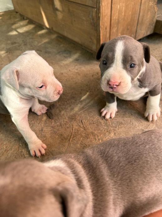 Primamo rezervacije za Blue Line štence Američkog staforda sa vrhunskim pedigreom.Štenci su stari 6 dana te če biti cijepljeni, čipirani i više puta očišćeni od parazita. 4 muška i 2 ženke