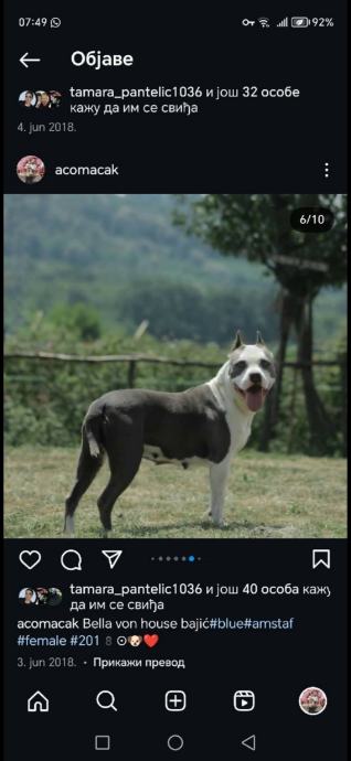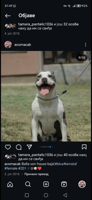 Odgajivačnica američkih stafordskih terijera "VON HOUSE BAJIC" (FCI 6249) vrsi rezevacije za plave stence americkog staforda. Ostenjeni. 14. 7. 2025. Oba roditelja su na slikama, plave boje vrhunski primerci rase i jako mirni. Vrhunski primerci rase izlobeni psi sa titulama. Oba roditelja su ataxia clear. Stenci se preuzimaju očišćeni od parazita, vakcinisani(cjepljeni 2 puta) , revakcinisani sa zdravstvenim kartonima. I papirima rodovnicima(pedigreima) po zelji kupca i po dogovoru . cene su od 500 eura pa na gore. Moguce licno preuzimanje šteneca ili dostava stenaca u srbiji, bih, cg, hr, i eu po dogovoru. Slanje steneta za hr i slo je oko 200eura sa eu putovnicom. Za vise informacija i slika pozovite ili me dodajte na fejsbuku Aco Macak Bajic ili na instagramu acomacak .molim samo ozbiljne kupce da me kontaktitaju i da detaljno procitaju tekst oglasa, sve ostalo cemo se lako dogovoriti. dostupan sam i na viber i whatsApp slobodno me pozovite za vise informacija +381692020902