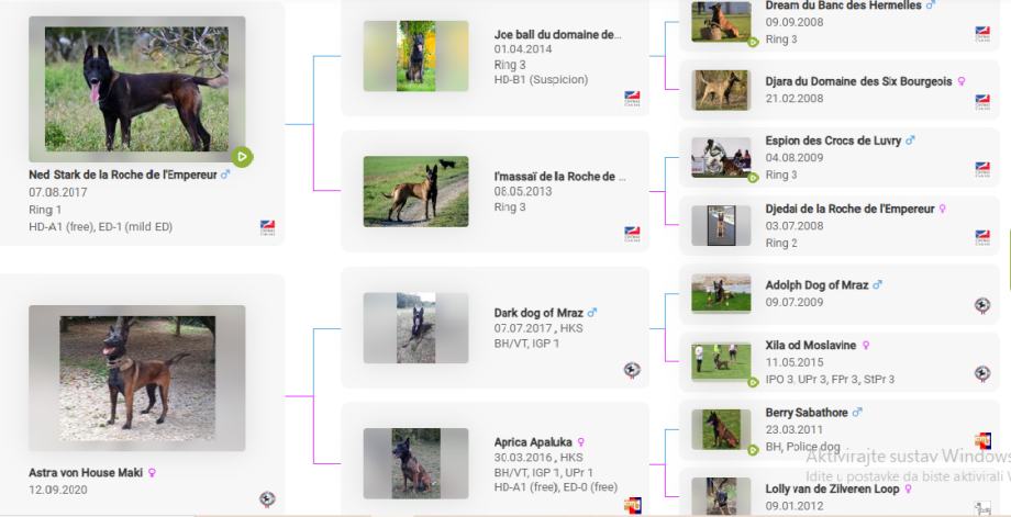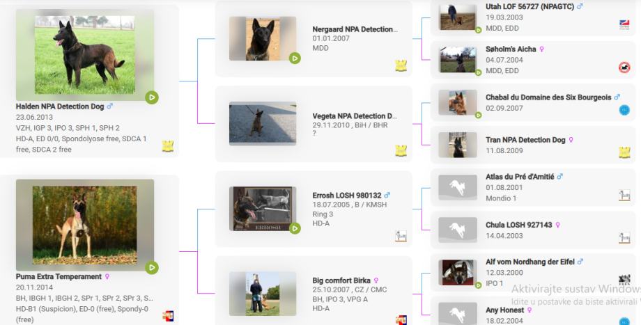 Podatci o porijeklu i Rodovnicima na stranici Working Dog