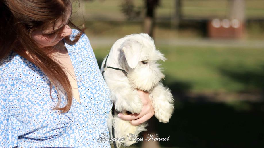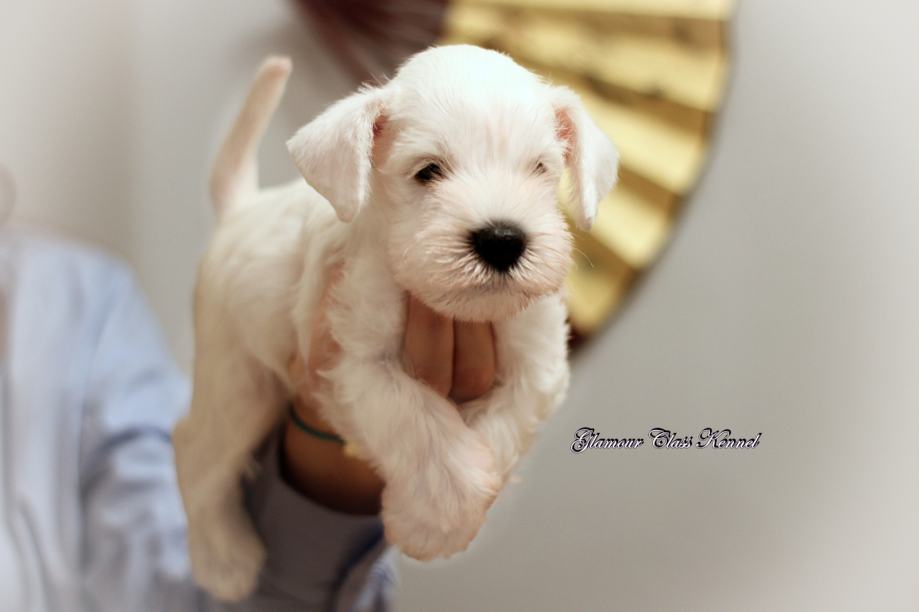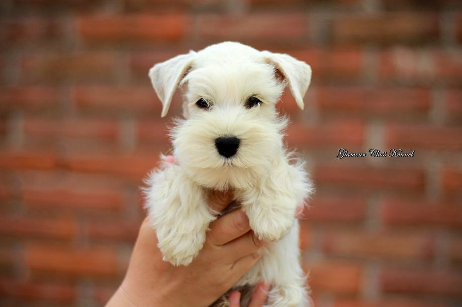 Štenci bijelog patuljastog šnaucera idealni su za obitelji s djecom.