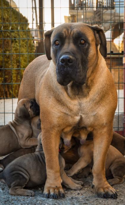 Oba roditelja su u našem vlasništvu, a štenci odrastaju u obiteljskom okruženju. Za one koji nisu upoznati s pasminom, južnoafrički mastifi poznati su po svojoj uravnoteženosti kao obiteljski psi koji su odlični s djecom i pouzdani psi čuvari.