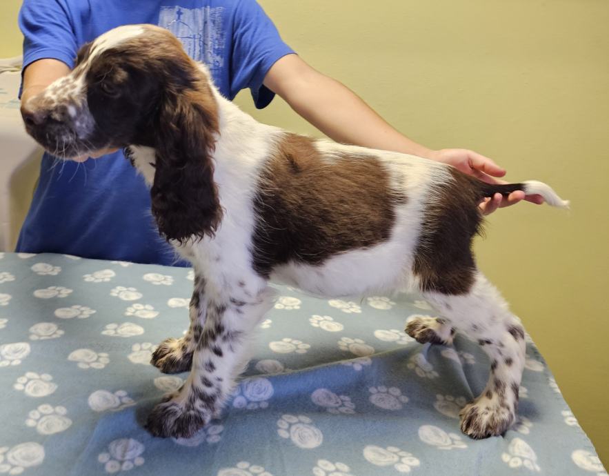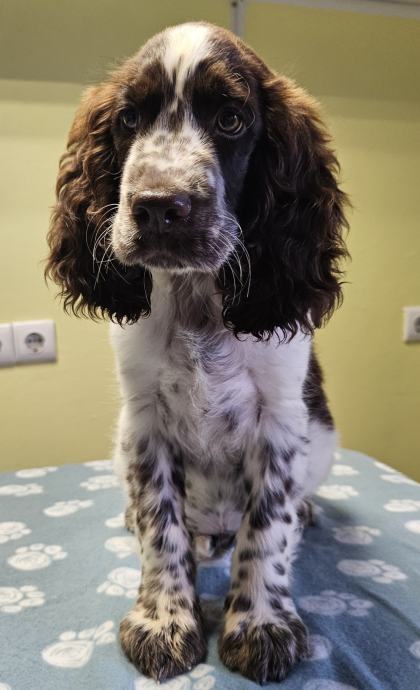 Woody je okoćen 13.05.2024. i bijelo smeđe je boje. Jako je lijep, veseo i pametan - pravi primjerak pasmine. Onaj tko ga kupi zasigurno neće požaliti.