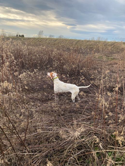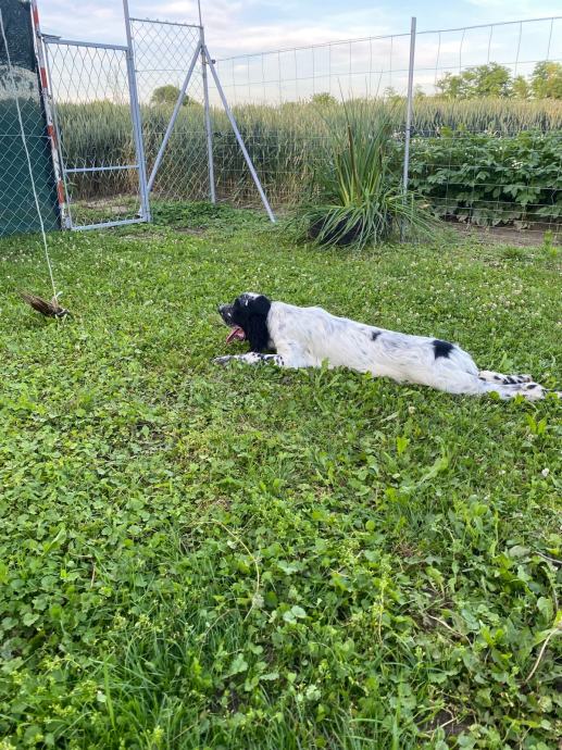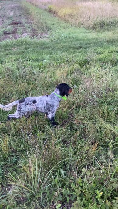Pas je dobre naravi,sluša,prati,trči,svakodnevno treniran i ima odrađene 2 Full sezone sa više od 200 izlaza na polje,šumu Itd.