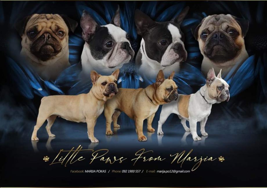 Uzgajivačnica "LITTLE PAWS FROM MARIJA" prodaje prekrasne ženkice francuskog buldoga oštenjene 06.05.2021.(OSTALA JE JOŠ ŽENKICA BEŽ BOJE NA SLIKAMA) Štenci su hranjeni Royal Canin starter hranom,redovito su čišćeni protiv parazita (svakih 14 dana),te su cijepljeni,čipirani i posjeduju hrvatsku rodovnicu.Majka štenaca je iz poznate uzgajivačnice "WALPURGIS NIGHT" te posjeduje sve genetske testove Klear.Navedenu uzgajivačnicu možete potražiti na internet stranicama.Otac štenaca je iz uzgajivačnice "SINJERI'S RED RIVER OF LOVE" te je Winner 2016. u Zagrebu u otvorenoj klasi.Navedenu uzgajivačnicu možete također potražiti na internetu.