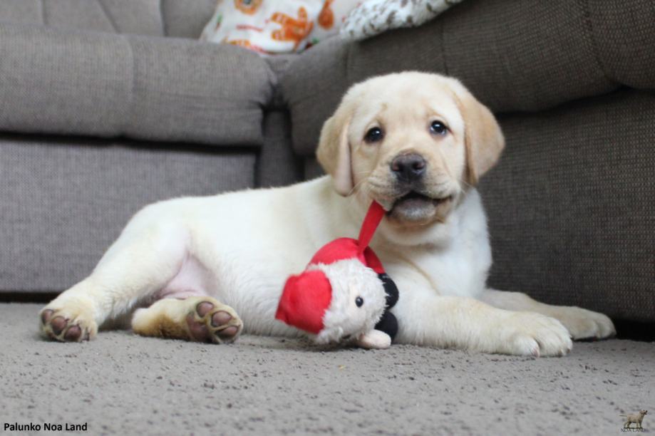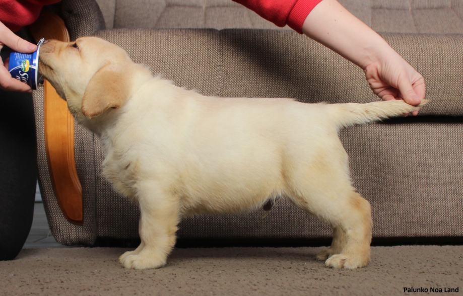Uzgajivačnica Noa Land ima dostupno vrhunsko žuto muško štene labrador retrivera engleskih krvnih linija, s rodovnicom Hrvatskog kinološkog saveza (FCI), koje je oštenjeno 19.11.2025. godine. Za odlazak u novi dom spremno je žuto štene, imena po rodovnici: Palunko Noa Land. Štene posjeduje EU putovnicu, mikročipirano je, više puta očišćeno od parazita i dva puta cijepljeno protiv štenećaka (zaraznih bolesti). U našem domu, štene je započelo sa procesom socijalizacije, upoznavanjem novih ljudi i prostora, druženjem s našim odraslim psima i mačkom, vožnjom u autu, učenjem hodanja na povodniku te boravkom u kući i na otvorenom. Palunko je razigranog i veselog temperamenta.