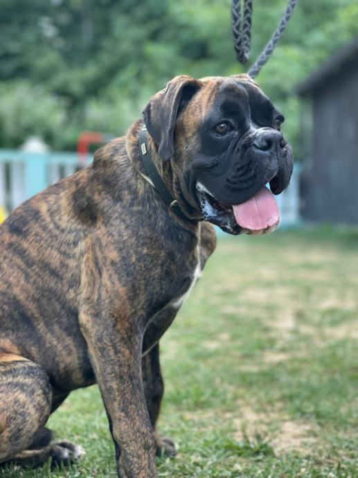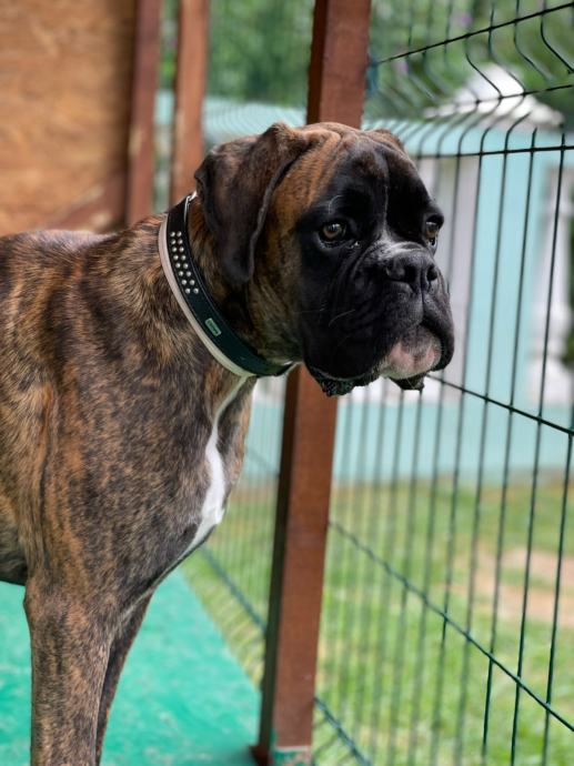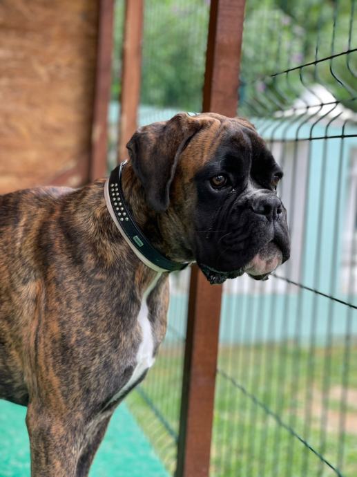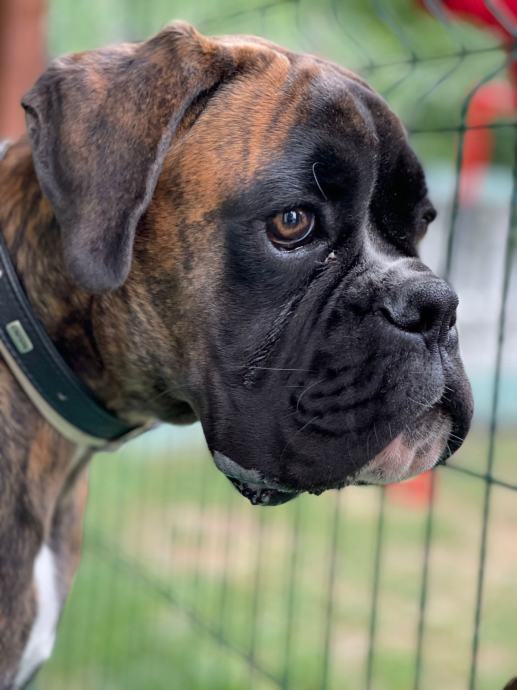 Njemački boxer sa rodovnikom star 7 mj, socijaliziran,izrazito krupan za svoju dob, prekrasne glave i tijela dobar sa drugim psima i ljudima.