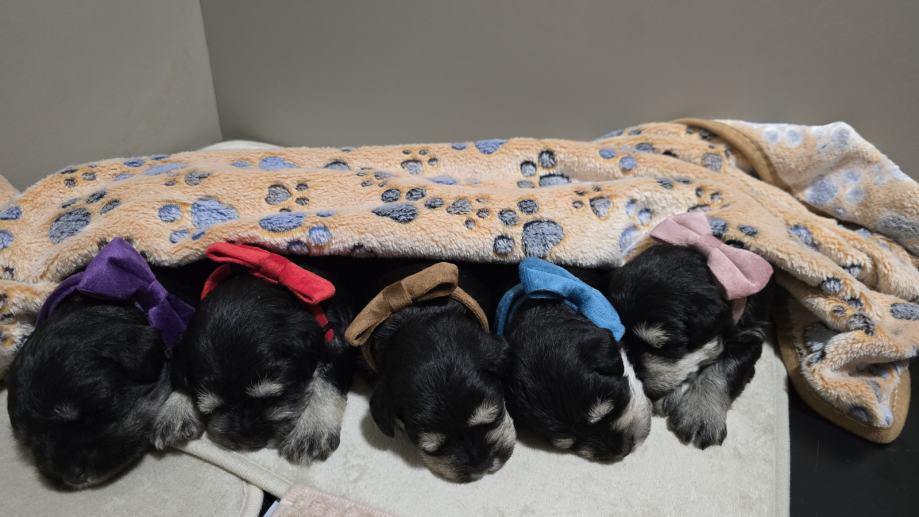Sa ponosom vam predstavljamo tek okocene štence patuljastog šnaucera! Ovi prelijepi mališani potiču od roditelja vrhunskog porijekla, odgajani s puno ljubavi i pažnje.