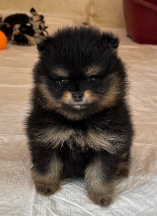 Prekrasni stenci njemackog patuljastog spica - pomeranca od roditelja multichampiona, rodeni 07/2025, slobodna crna zenka, odlicna narav i zdravlje, mikrocipirana, kompletno cijepljena s rodovnicom HKS-a.