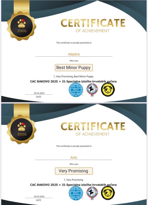 *Cijepljeni su i očišćeni od parazita; posjeduju rodovnice izdane od strane HKS-a