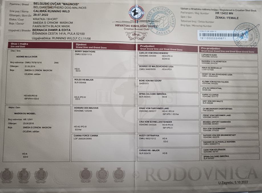 JOŠ JEDNA CURICA TRŽI NOVI DOM Prodaju se štenci Belgijskih ovčara-Malinois. Otac Hype is Gratsiano, sa radnim izpitom IPG-3. Majka Calibra Running Wild sa radnim izpitom BH-VT. Oba dva imaju napravljene testove za ataxiju, dnk,slikane kukove i laktove. Hype je pobednik 2023 CACIT Njemačke, CACIT Češke, 2024 pobednik CACIT Njemačke, CACIT Holandije, CACIT Poljske. Od FCI-a je dobio 2025 naziv medžunarodni prvak u radu.