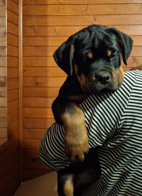 Prodaju se štenci rotvajlera stari 11 tjedana, ostala su još samo 2 prekrasna mužjaka i 1 kvalitetna ženkica. Štenci su cijepljeni i čipirani, redovito čišćeni od parazita, imaju EU putovnicu i HR rodovnicu i spremni su za preuzimanje. Cijelo leglo je vrlo kvalitetno i ujednačeno, odlične anatomije.