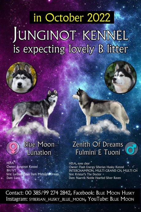 Majku štenaca i njen život od kad je bila beba pa dosad možete vidjeti na našem YT kanalu Blue Moon Husky. https://www.youtube.com/c/BlueMoonHusky