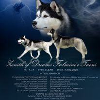 Otac: Sky – Zenith Of Dreams Fulmini E Tuoni, Interchampion, Multi Grand Champion, Owner: Flash Energy Siberian Husky Kennel, HD:A, eyes clear