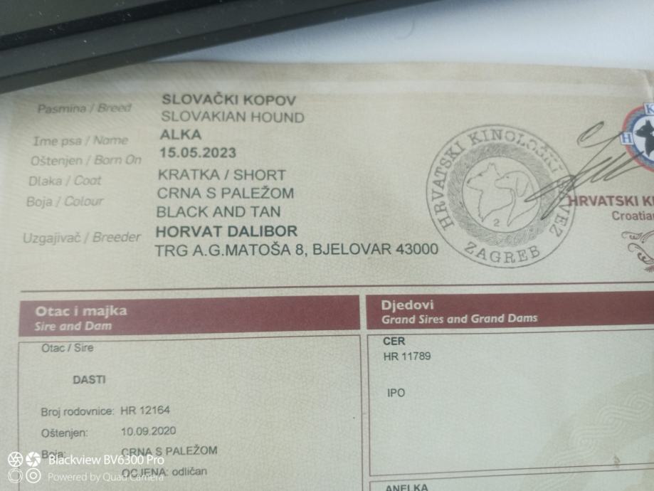 Prodajem mladu ženku slovačkog kopova , ošt. 5.2023, papiri HKS. kuja nije vođena u lov