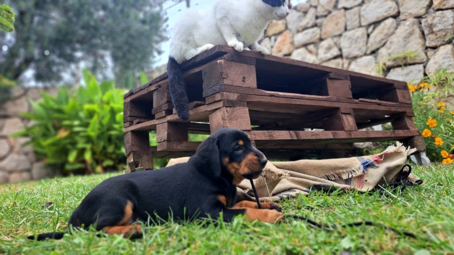 Prodajem dva muška štenca slovačkog kopova od radnih roditelja na divlju svinju. Oštenjeni 12.09.2025., rodovnice HKS. Štenci su cijepljeni tri puta peterovalentnim cijepivom i redovno čišćeni od parazita. Cijena 450€. Za sve dodatne informacije rado Vam stojim na raspolaganju na kontakt broju 0981976630.