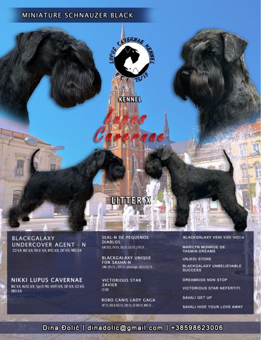 Uzgajivačnica crnih, bijelih i papar i sol patuljastih šnaucera "Lupus Cavernae" FCI 73/19 ima leglo crnih patuljastih šnaucera.