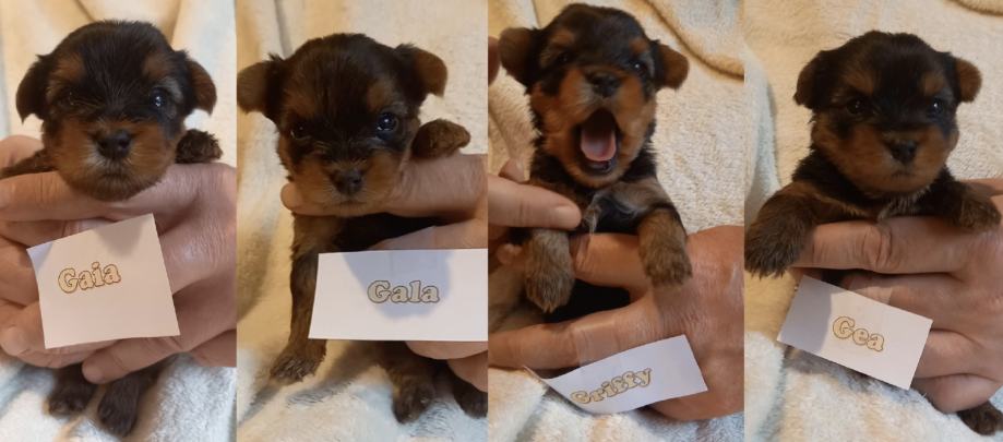 Naša Moni je 29.12.2024 okotila četiri štenca, tri curice i dječaka. Sve su lijepe, snažne, zdrave i živahne. Mama i tata su zdravi, razigrani, druželjubivi i dragi Yorkiji, oboje s rodovnicama i odličnim ocjenama.