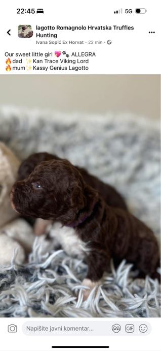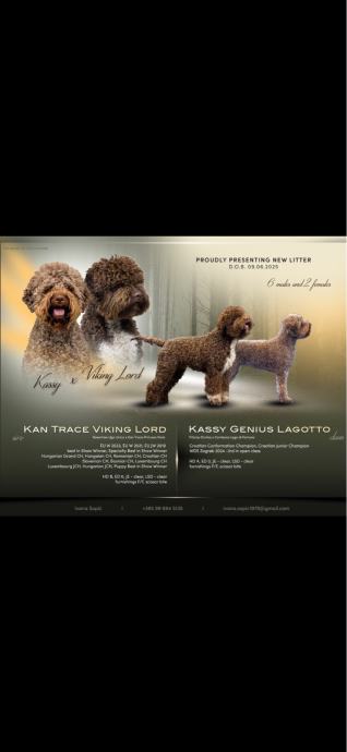 Ženka:KASSY GENIUS LAGOTTO-Lu je u našem vlasništvu,dolazi iz perspektivne uzgajivačnice sa višegodišnjim iskustvom.Stara je 3.godine i višestruko je nagrađivani izložbeni pas.