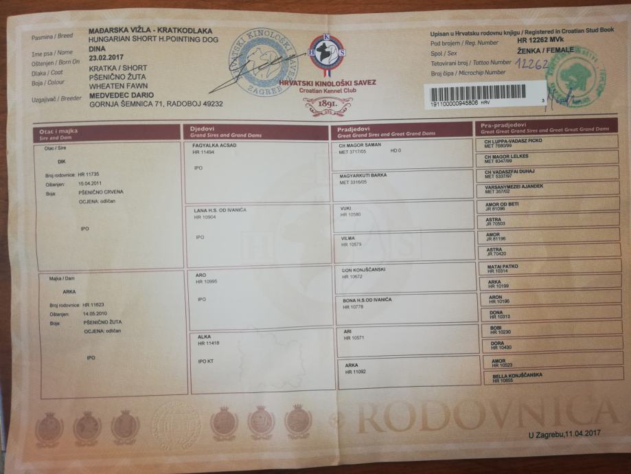 Štenci su očišćeni od parazita, cijepljeni,tetovirani i sa rodovnicom.